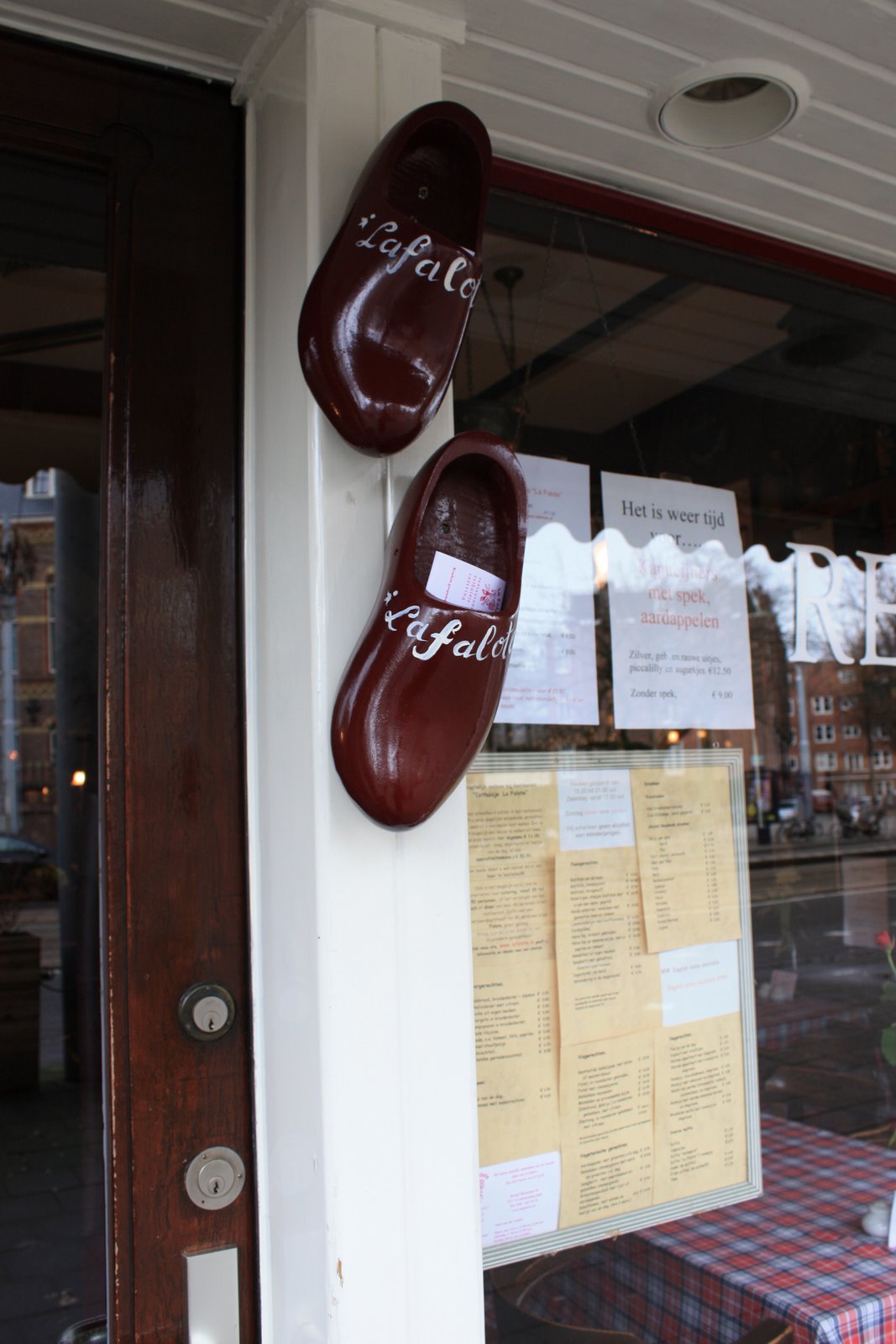 Menu schoenen – menus in wooden shoesRestaurant eethuisje La FaloteRoelof Hartstraat 26 “please take a card!”