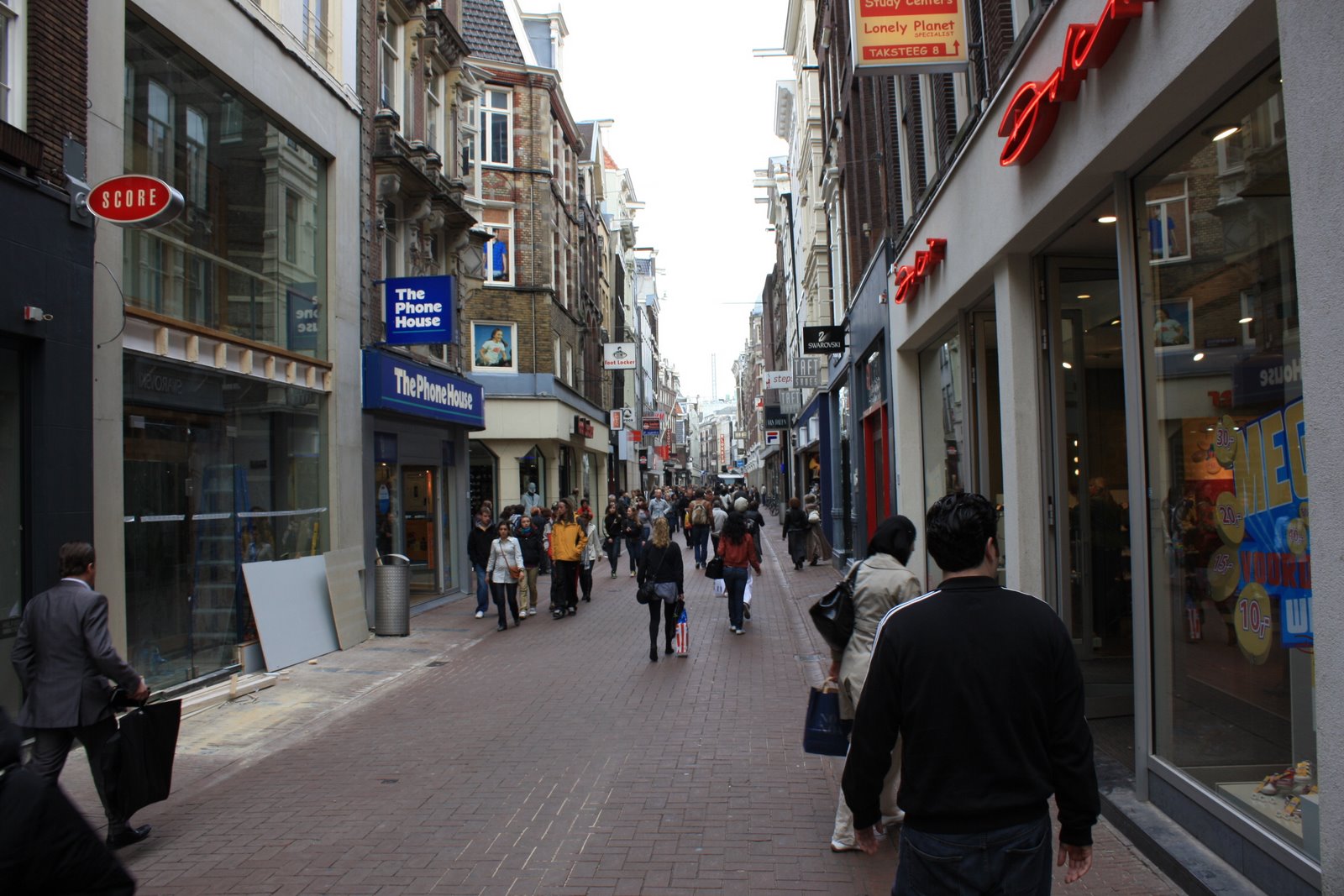 Kalverstraat – long pedestrian shopping street in center of Amsterdam