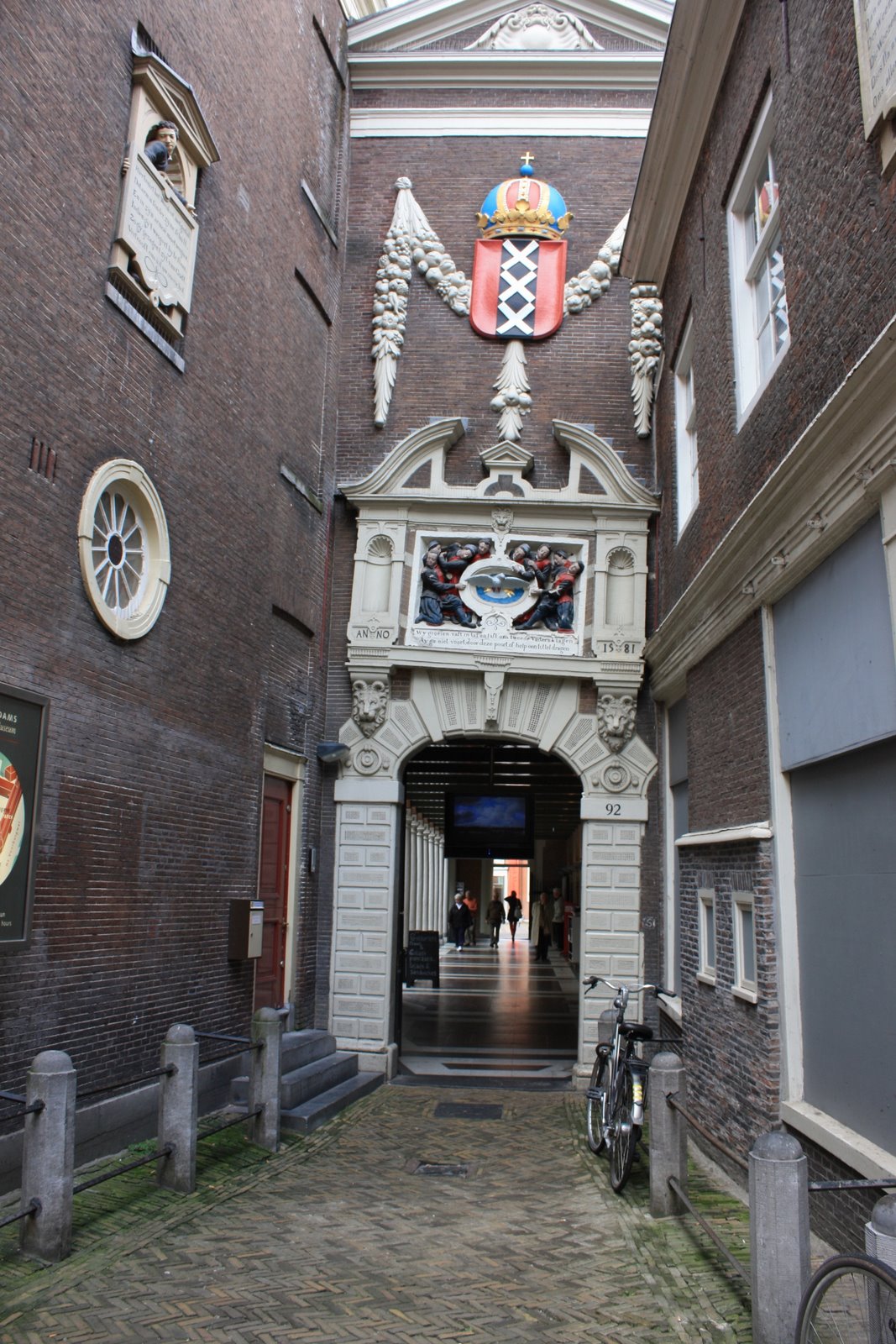 Wapenschild – the Amsterdam emblem (shield) above the entrance door to the Amsterdam History Museum Amsterdams Historisch Museum at Nieuwezijds Voorburgwal 359) this is the pedestrian entrance near the Begijnhoff.