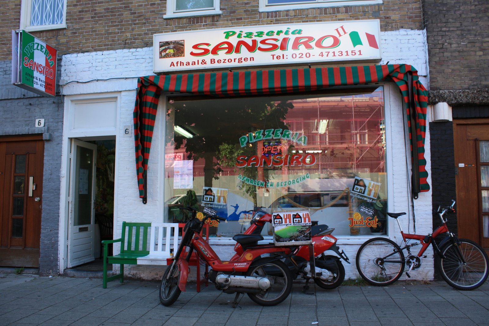 Sansiro pizzaria – very colourful pizza shop at Pijnackerstraat 6 across from the church