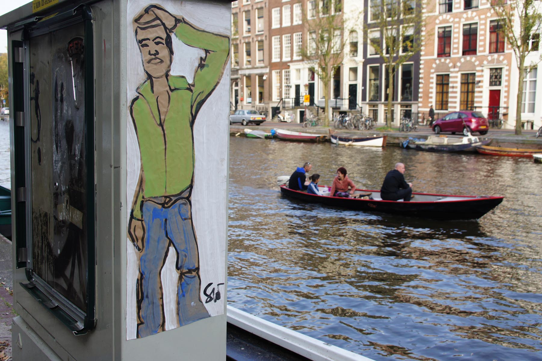 Random street art around the Staalstraat She loves nerds. Wheatpaste on an electric box Old school tattoo birds wheatpastes