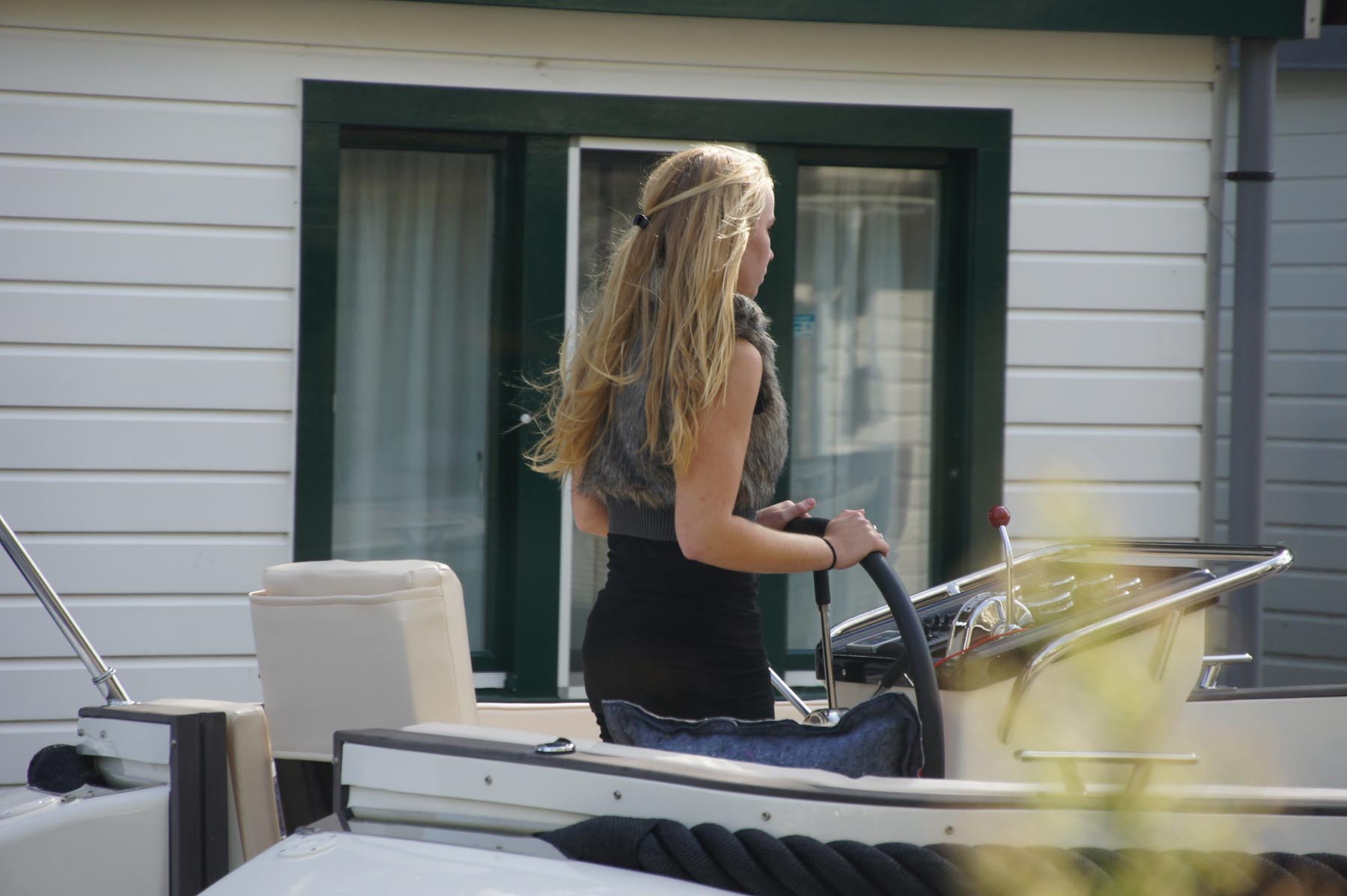 - Very young lady with a very monstrous boat