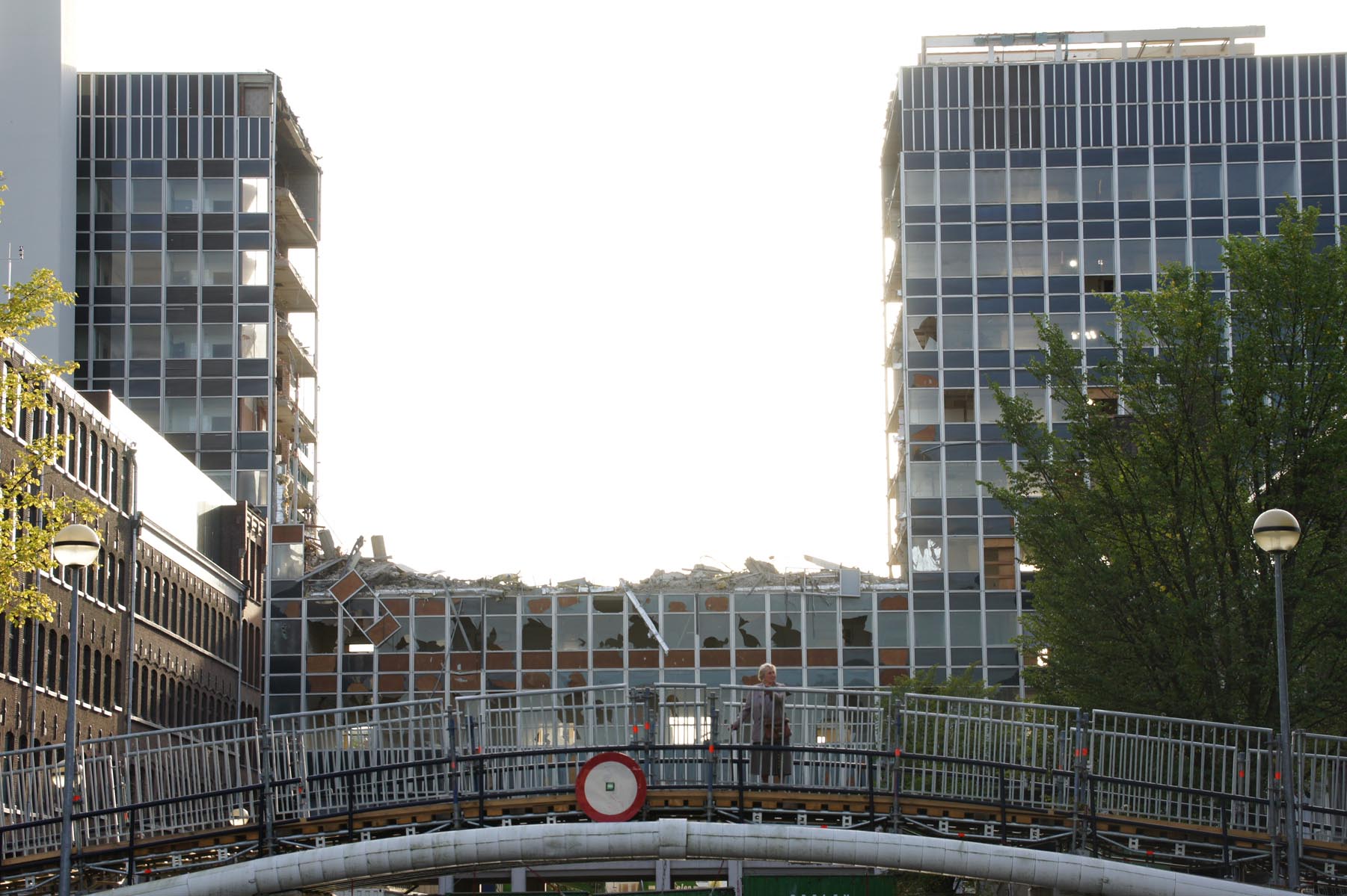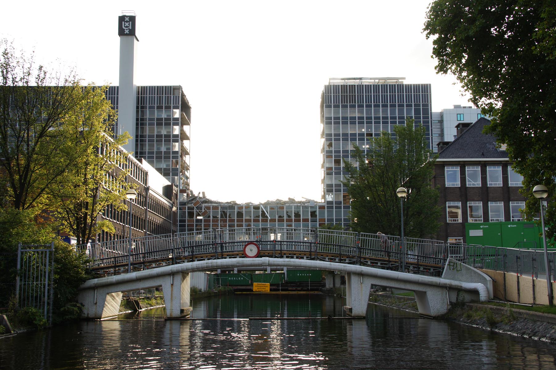 - Pedestrian bridge and construction at the Amsterdam University demolition site.