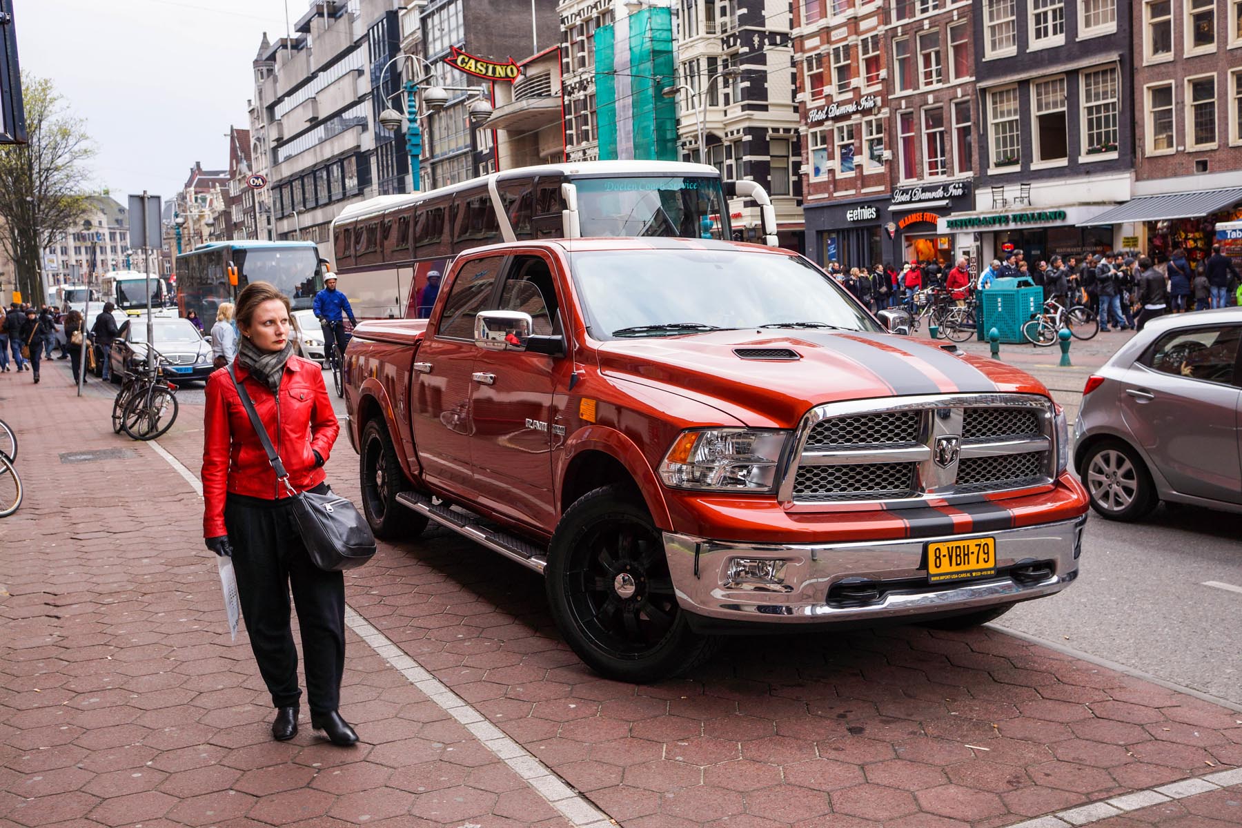 - The perfect vehicle for tiny european roads, a monster Dodge Hemi (gas isn’t cheap here) (notice the unicycle?)